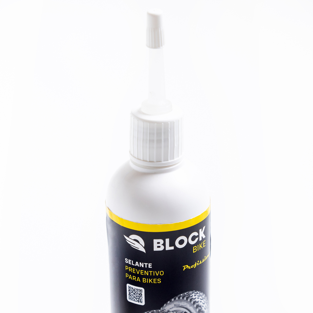 La Block Bike fue desarrollada exclusivamente para cubiertas tubeless y para adaptar un KIT Tubeless. Fabricado con caucho natural y partÃculas de polvo de neumáticos, proporciona un excelente sellado de orificios de hasta 4 mm del objeto perforante en la banda de rodadura. Cuando forma una pelÃcula protectora, también ayuda a proteger contra las fugas de las microporosidades que se filtran naturalmente a través del caucho del neumático.